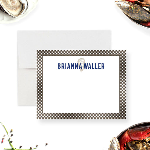 This notecard is a whimsical tribute to the sea, featuring a charming oyster illustration nestled within a cozy plaid border design. Whether you're...
