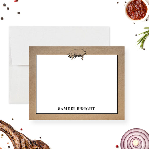 Embrace the charm of the countryside with this rustic notecard featuring a delightful pig illustration. Ideal for sending post-event notes after pi...