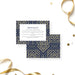 Invite your guests in style with this elegant invitation, designed with a striking navy blue and gold geometric pattern, making it perfect for organizations seeking a stylish and cohesive presentation. Printed on high-quality 5" x 7" matte white paper, this custom-printed invitation allows you to personalize every detail—event name, date, time, venue, RSVP information, and more.