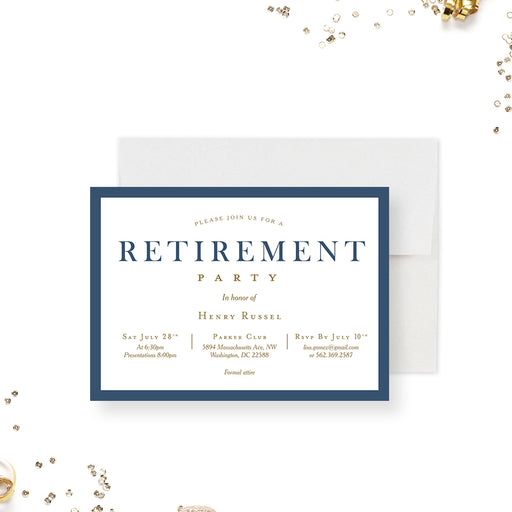 Translation missing: en.product_price.item.price.range_htmlOriginal price$60$60Current price $60| /Set the mood for a memorable evening with this elegant ticket-style invitation, featuring a bold navy and gold geometric pattern. Printed on high-q...