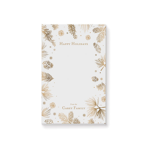 Celebrate the season of giving with this beautifully designed holiday notepad. Featuring elegant illustrations of pine boughs, pinecones, and snowf...
