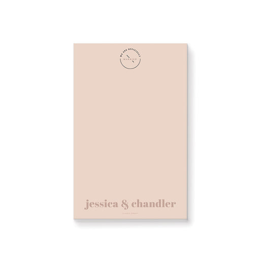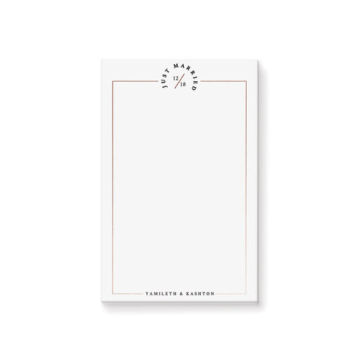 Celebrate your love and capture your thoughts with this just married notepad, featuring a minimalist stamp design. Perfect for newlyweds, this eleg...