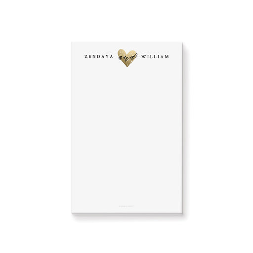 Celebrate your love story with this elegant romantic wedding notepad, featuring a stunning heart design nestled between the couple's names. This mi...