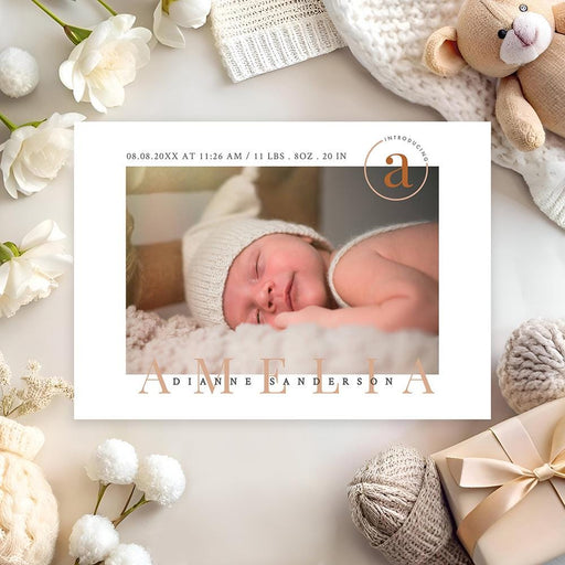 This charming baby announcement features a delightful design with a personalized touch, perfect for introducing your little one to family and frien...