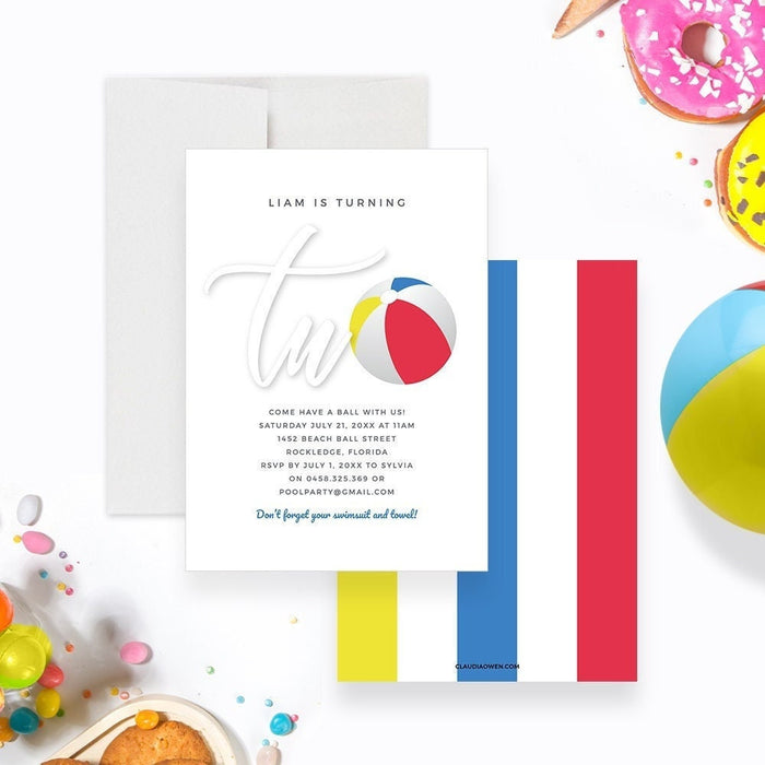 2nd Birthday Pool Party Invitation Template with Beach Ball Digital Download