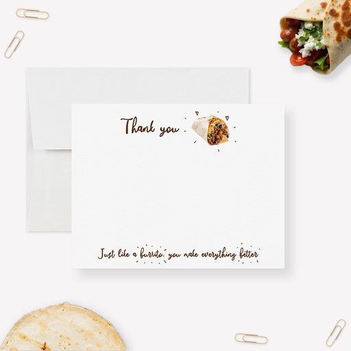 Say thanks with a side of humor and a whole lot of flavor! This funny burrito-themed thank you card is perfect for the person who wraps your day in...