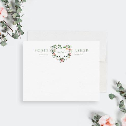 Express your heartfelt gratitude in style with this personalized floral thank you card, featuring delicate blush and coral blossoms connected by a ...