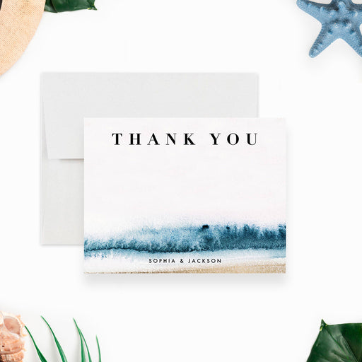 Dive into coastal bliss with our beach-themed notecard, featuring a contemporary watercolor design that captures the tranquil hues of the sea gentl...