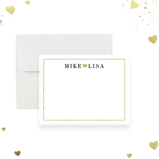 Express your affection with this elegant notepad, featuring a golden frame and a golden heart illustration positioned between the names of the coup...