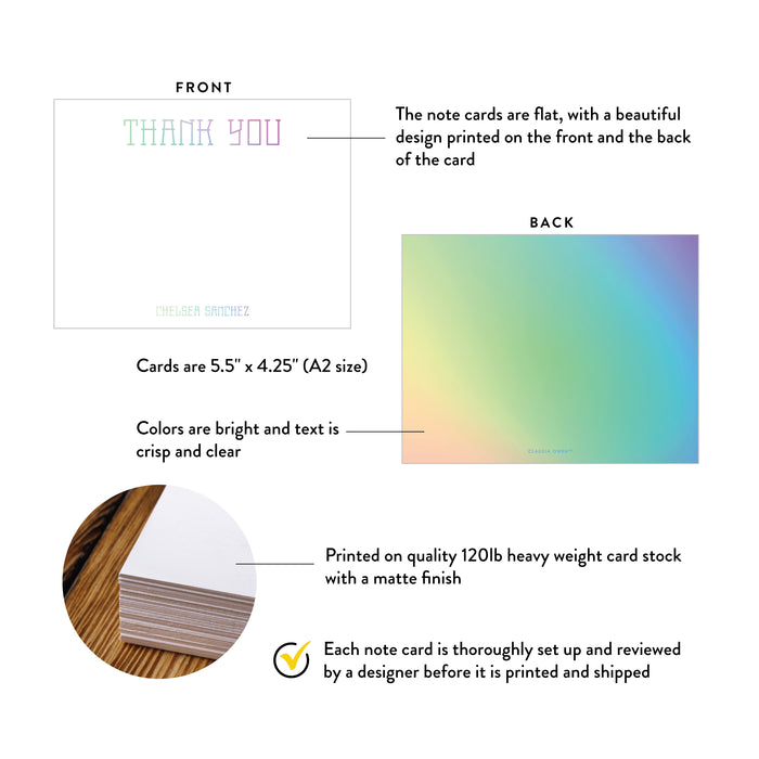 Pastel Thank You Card, Colorful Gradient Note Cards Girls Stationery Set