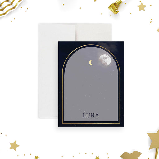 Celestial Note Card with Moon and Stars, Starry Night Sky Birthday Thank You Card