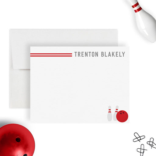 Strike a chord with bowling enthusiasts with this personalized note card. The front of the card showcases a dynamic illustration of a bowling ball ...