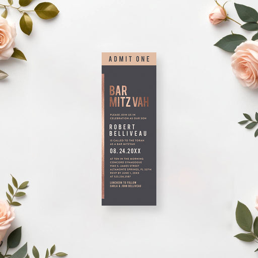 Sand, sun, and a Bat Mitzvah celebration—what more could you ask for? Get ready to party with this elegant beach invitation card! It is designed to...
