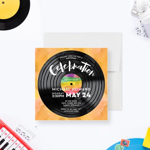 Vintage Birthday Invitation Card with Vinyl Record, Retro Bday Invites, Music Themed Invitations for Adult Birthday Celebration