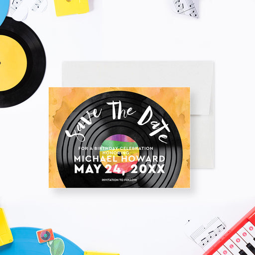 Hit play on fun and save the date! Join us for a vintage vinyl birthday party where the music is as classic as the cake! Featuring a fun illustrati...