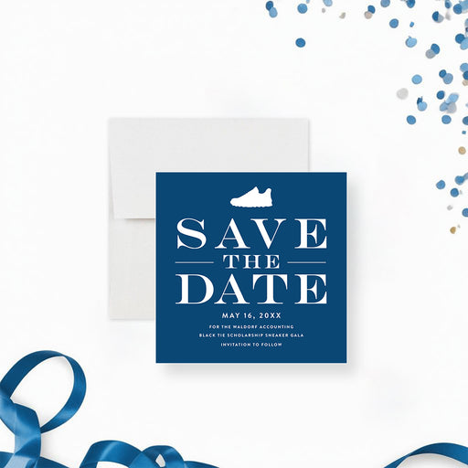 Announce your upcoming event in style with this modern sneaker gala save the date card. Printed on premium white matte cardstock, this 5" x 5" squa...