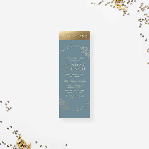 Get ready for a sophisticated Easter celebration with this enchanting ticket card! Adorned with a whimsical bunny illustration and a touch of spark...
