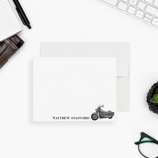 Rev up your correspondence with this stylish motorbike note card! The front of the card features a cool illustration of a motorcycle, with intricat...
