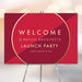 Make your business debut stand out with this launch party invitation, featuring a bold and modern design that balances sophistication and celebration. Printed on high-quality white matte paper (5” x 5”), this invitation includes a gold circular border that highlights your event details against a striking red background — ideal for leaving a memorable first impression.