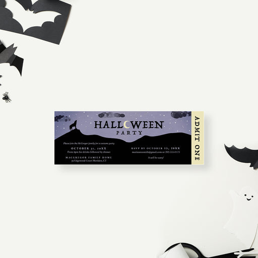 Get ready to host the most anticipated event of the spooky season with this Halloween party ticket invitation. Featuring a dark, mysterious night s...