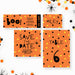 Send chills and smiles with this fun Halloween party invitation, featuring a bright orange background with playful black and yellow dots and cheeky spiders hidden inside the bold “BOO!” lettering.