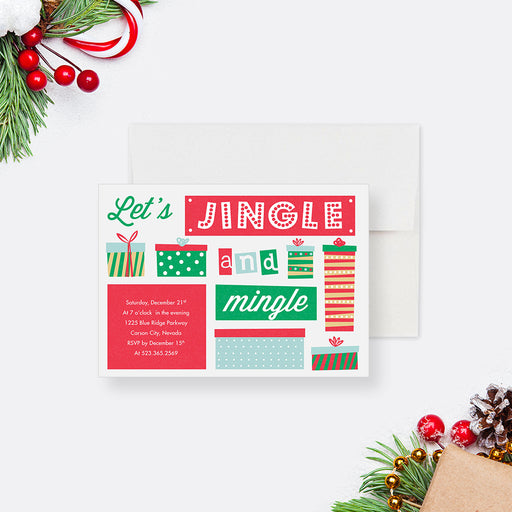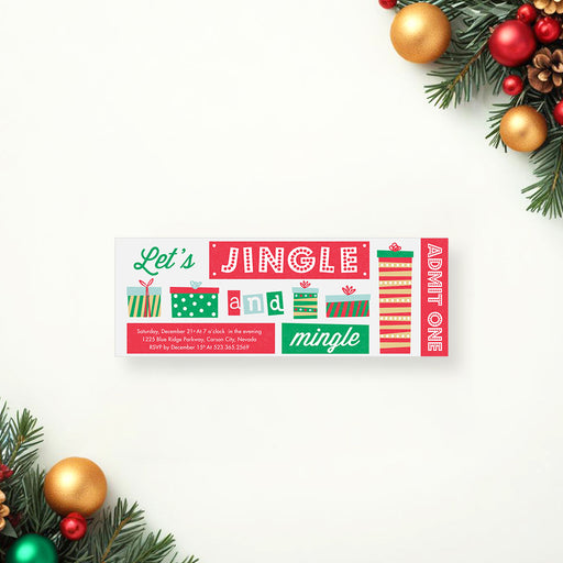 Make your holiday celebration even more fun and festive with this ticket-style invitation. The card features the phrase “Let’s Jingle and Mingle” i...