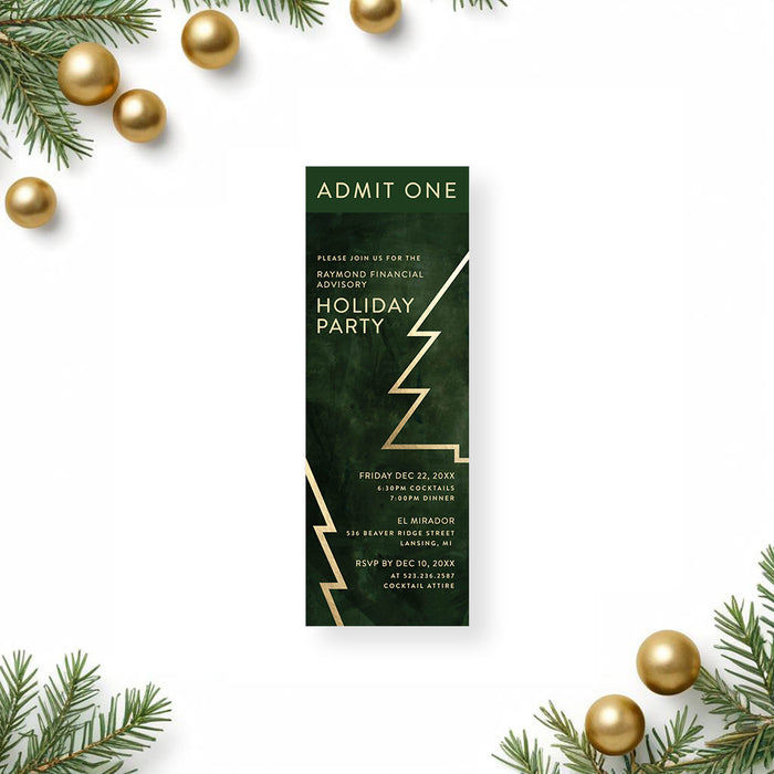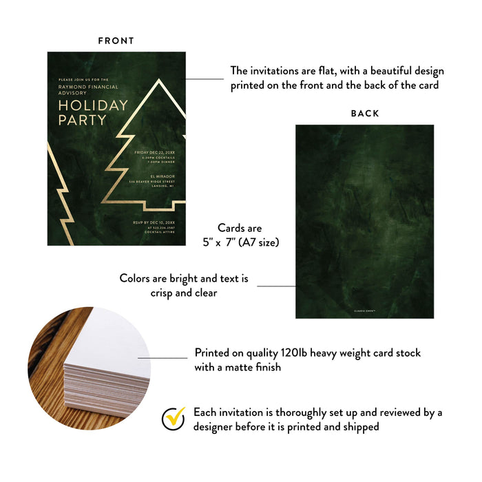 Make your holiday celebration unforgettable with this elegant holiday party invitation, featuring a modern Christmas tree outline against a deep emerald green background. Perfect for corporate, company, and business gatherings, it adds a refined, festive touch to your seasonal event—setting the tone for an evening of style and celebration.
