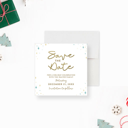 Modern Save the Date Invitation for Family Christmas Celebration with Festive Confetti, Christmas Holiday Dinner Save the Dates
