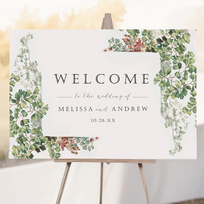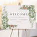 Greet your guests in style with this elegant botanical welcome sign, which features a beautifully designed arrangement of lush watercolor greenery. This printed wedding signage is ideal for making a warm and memorable first impression at your ceremony, reception, or milestone celebration.