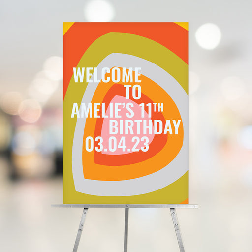 Colorful Birthday Welcome Sign with Groovy Pattern, Retro Inspired Kids Party Birthday Sign for Girls