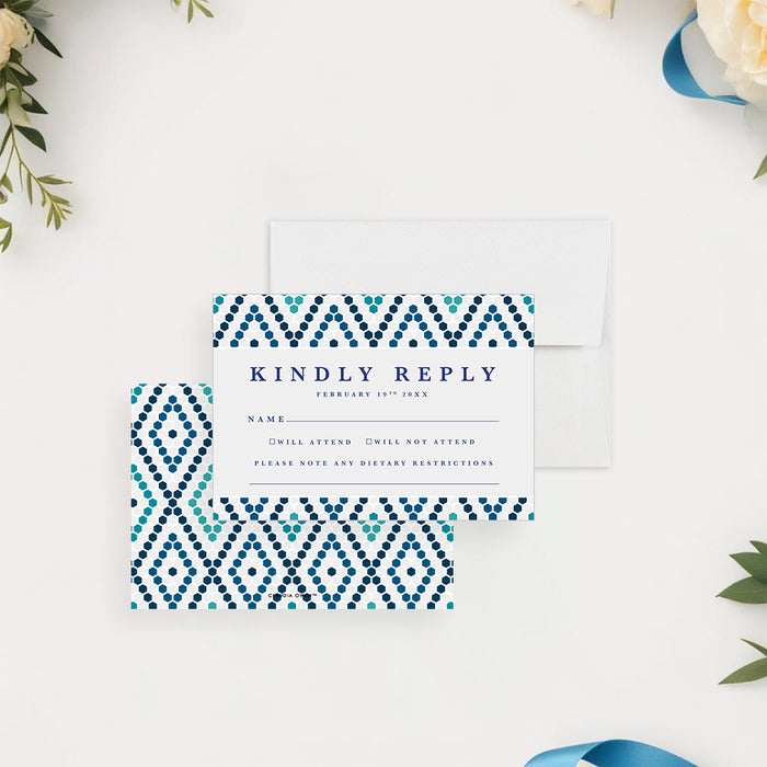 Mediterranean Wedding Invitation with Blue Mosaic Tile Design