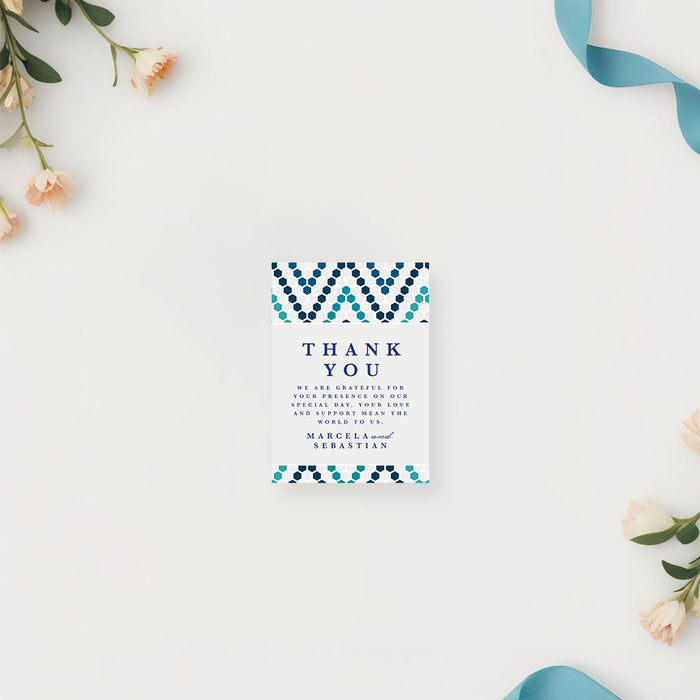 Celebrate your special day with this elegant blue tile wedding invitation, inspired by Mediterranean mosaic patterns. Featuring a geometric design in refreshing shades of blue and teal, this invitation is ideal for destination weddings, summer ceremonies, or Mediterranean-themed events.