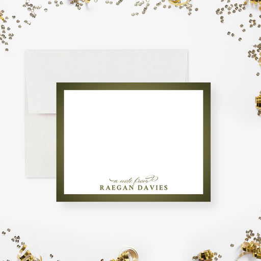 Add a personal and elegant touch to your correspondence with this classy personalized notecard. Featuring a sophisticated gold frame with light spe...
