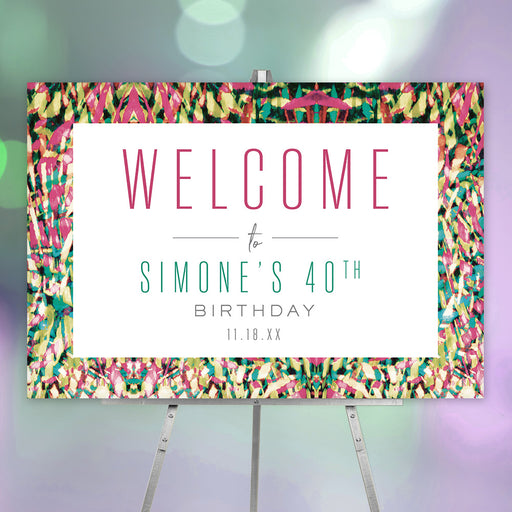 Bring bold island vibes to your celebration with this birthday welcome sign. Designed with vibrant colors and an abstract tropical pattern, this si...