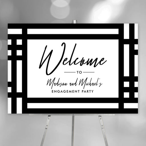 Make a bold statement as you welcome guests to your celebration with this sleek and modern engagement party welcome sign. Featuring a striking geom...