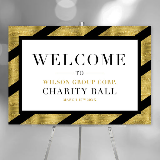 Make an unforgettable first impression at your next formal event with this elegant charity ball welcome sign. Designed with bold black and gold dia...