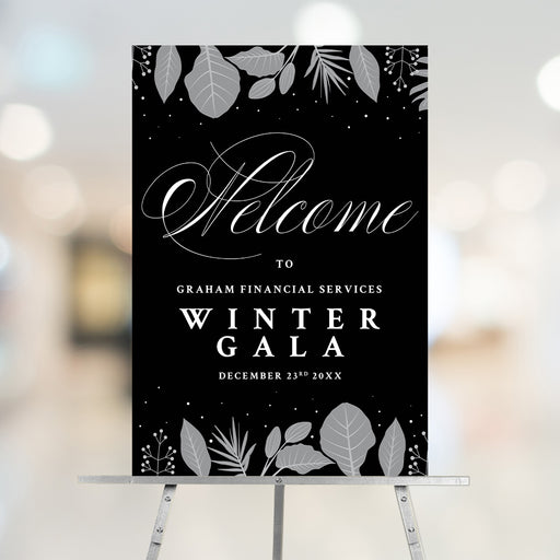 Greet your guests with style and seasonal charm using this winter welcome sign—perfect for corporate parties, holiday galas, and formal seasonal ce...
