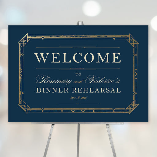 This vintage-inspired rehearsal dinner welcome sign is the ideal way to greet your guests at your pre-wedding celebration. The intricate geometric ...