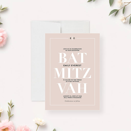 Save the date for a Bat Mitzvah to remember! Featuring modern typography in a delightful blend of pink shades, it sets the perfect tone for a celeb...