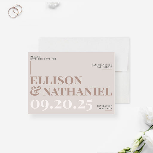 Minimalist Wedding Save the Date Card in Soft Neutral Colors, Contemporary Wedding Save the Date Card with Modern Typography