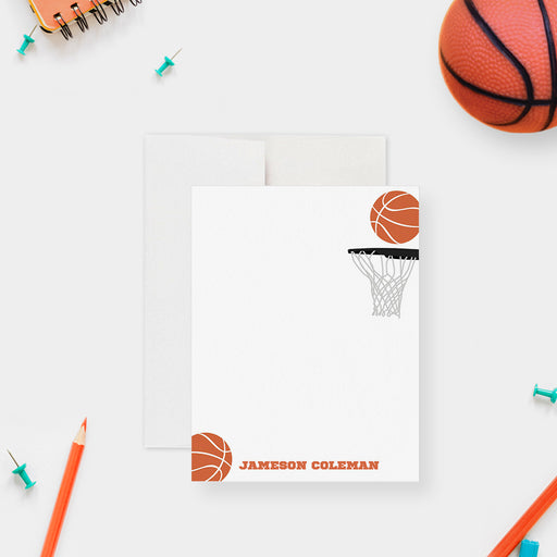 Dribble, shoot, score! Slam-dunk your gratitude with this personalized note card that showcases your name alongside a vibrant basketball ball and ...