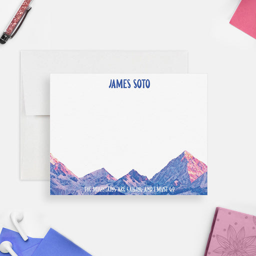 The mountains are calling, and I must go! Immerse yourself in the breathtaking beauty of the mountains with this stunning note card, featuring a go...