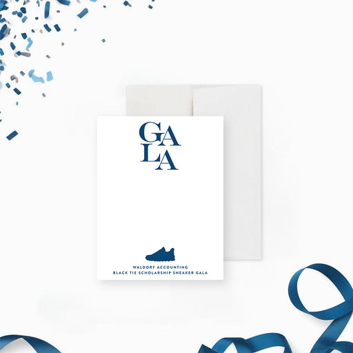 This personalized gala note card is designed to complement your black tie event with a stylish, modern touch. Featuring a bold minimalist layout wi...