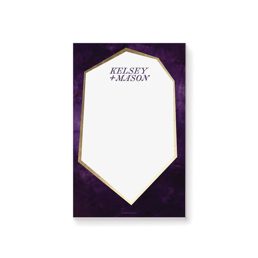 Make your notes as elegant as your event with this personalized purple and gold notepad. Featuring a rich, deep purple background and a gemstone-sh...
