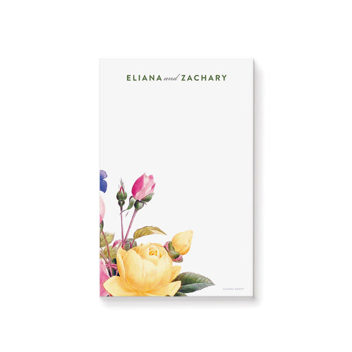 This personalized floral notepad is as beautiful as it is functional. Featuring a romantic arrangement of yellow and pink roses with soft green lea...