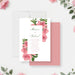 Printed on high-quality white matte paper measuring 5" x 7", this personalized invitation card balances a contemporary layout with traditional elegance. Your wedding details—names, date, time, venue, RSVP—are artfully arranged within a clean, minimalist panel framed by vibrant floral accents.
