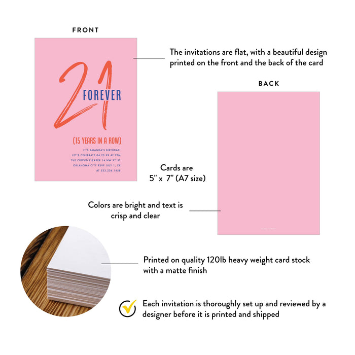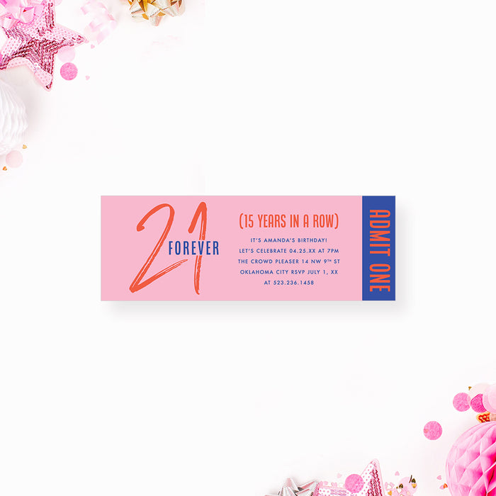 21 Forever Birthday Invitation, Funny Birthday Party Invitation