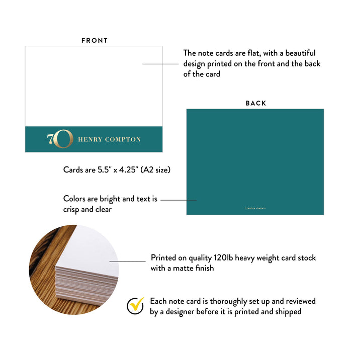 Celebrate life's most cherished moments with our exquisite notecard. This elegant design serves as the perfect canvas to commemorate special occasions, whether it's a milestone 70th birthday celebration or a 70th business anniversary.