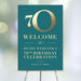 Celebrate a life well-lived with this elegant 70th birthday welcome sign. Designed to honor a special milestone, this sophisticated sign features a rich teal background paired with bold gold text—perfect for making your guest of honor feel truly celebrated. Whether you're honoring a cherished loved one turning 70 or celebrating seven decades of a company’s success, this sign sets the tone for a grand and heartfelt occasion.