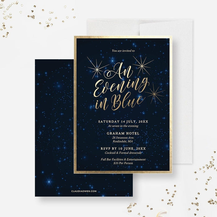 An Evening in Blue Printable Party Invitation, Starry Night Sky Instant Digital Download